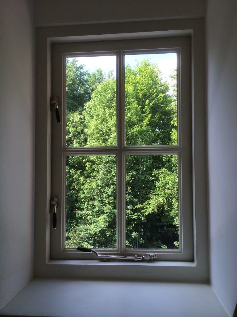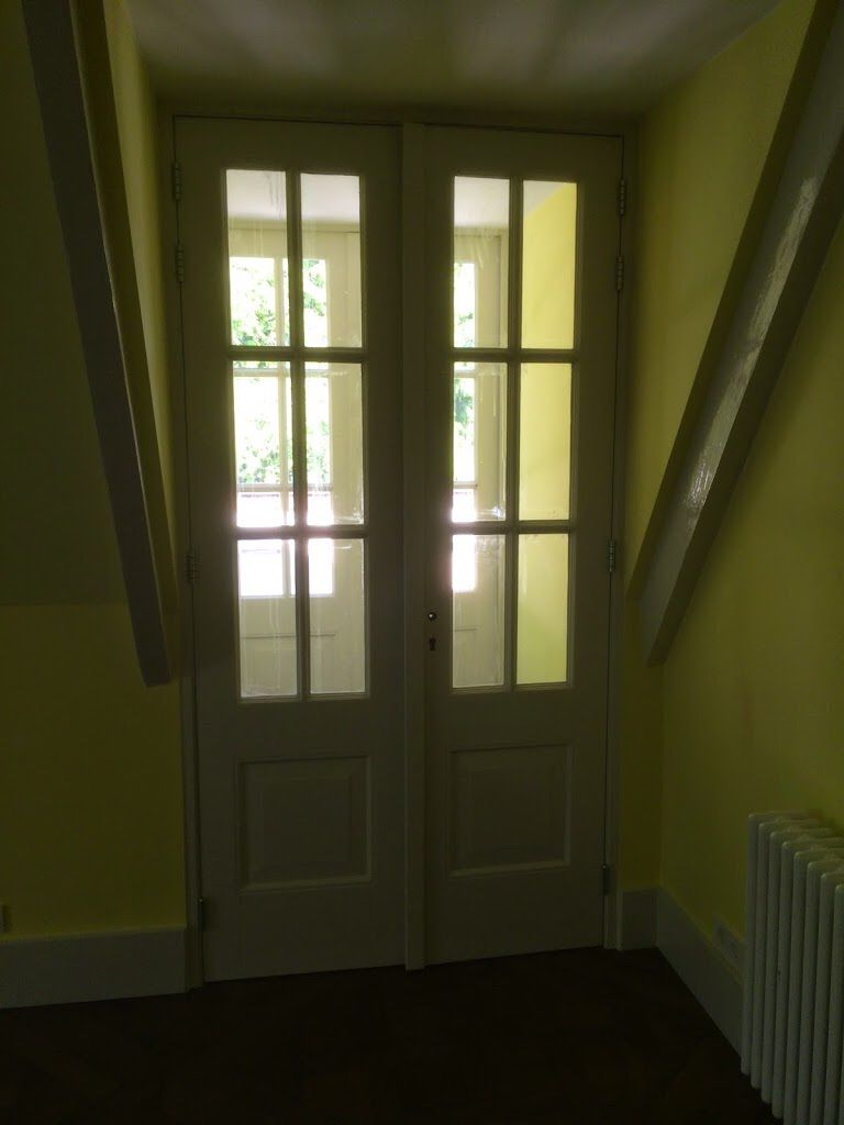 Een schitterend project. We mochten voor een monumentaal pand in Haren al het houtwerk vervangen. Deuren, kozijnen en ramen. Ook schuiframen, natuurlijk allemaal in de stijl passend bij het huis.